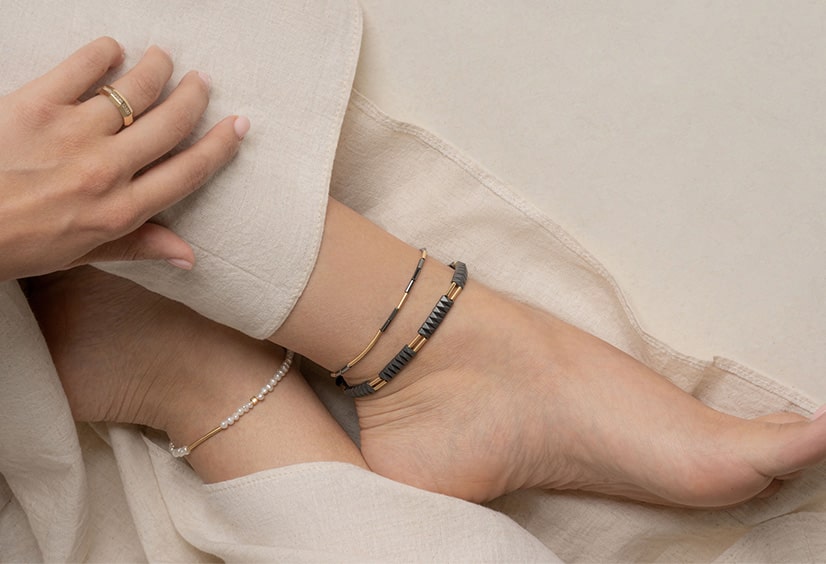 - تعادل را حفظ کنید: اگر پابند شما پرجزئیات است، بهتر است از ترفند پوشیدن چندلایه استفاده نکنید تا استایلتان شلوغ نشود. همچنین اگر میخواهید چند پابند ساده را با هم ست کنید، به رنگ و تناسب آنها با هم توجه کنید.